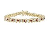 Ruby and Diamond Tennis Bracelet : 18K Yellow Gold - 3.00 CT TGW Best Price Today: